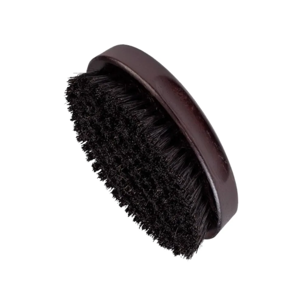 Cepillo mediano redondo para barba y cabello con cerdas naturales de pelo de jabalí. Distribuye los aceites naturales y ayuda a controlar ondas y frizz para un acabado suave y brillante.