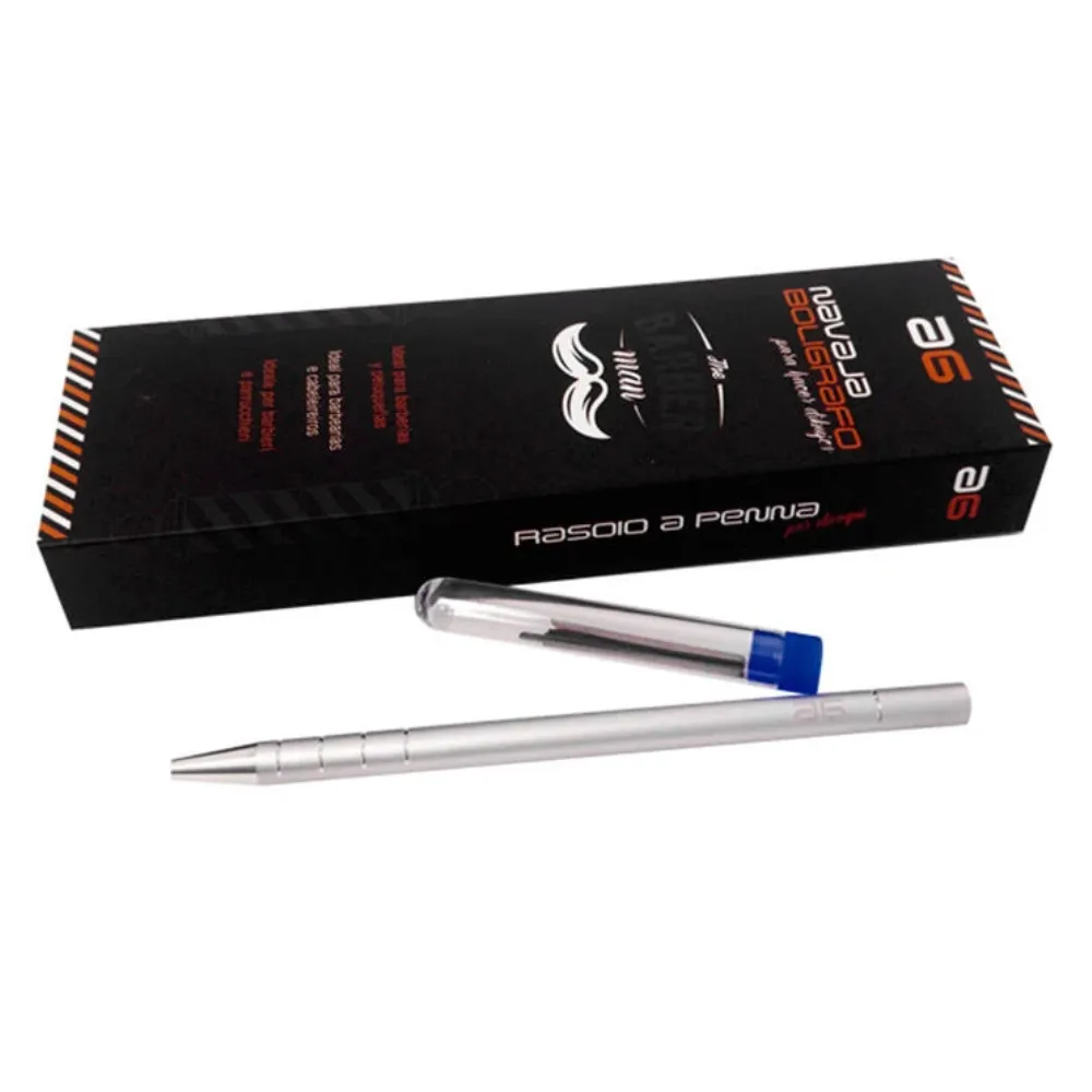 Navaja bolígrafo Asuer con recambios incluidos, perfecta para afeitados precisos y perfilado detallado. Diseño compacto y ergonómico para un agarre cómodo y control total en cada uso.