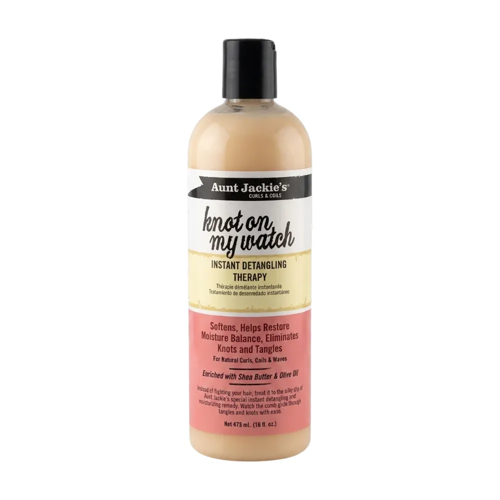 Aunt Jackie´s Curls & Coils Knot On My Watch 355ml es una terapia de desenredado instantáneo. Desenreda y elimina los nudos que se forman en el cabello enriquecido con manteca de karité y aceite de oliva, verás el cabello especialmente sedoso, hidratado y desenredado. Comprobarás como el peine se desliza a través de los enredos y nudos con total facilidad. Gran solución desenredante para todo tipo de cabellos y texturas. Sin sulfatos. Sin parabenos. No contiene aceite mineral ni petrolato.