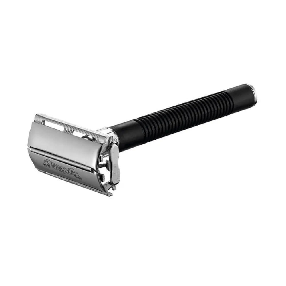 Maquinilla de afeitar Captain Cook de Eurostil con hoja completa, diseñada para ofrecer un afeitado preciso y profesional. Construcción robusta para un manejo cómodo y control total.