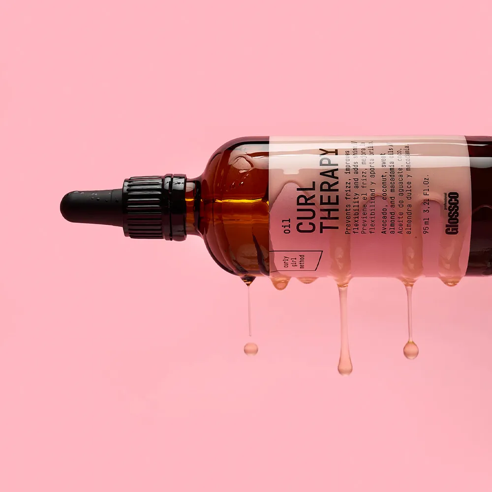 Glossco Curl Therapy Oil nutre y protege el cabello rizado y ondulado. Aceite ligero que aporta brillo, suavidad y controla el frizz sin apelmazar. Ideal para rizos definidos y saludables.
